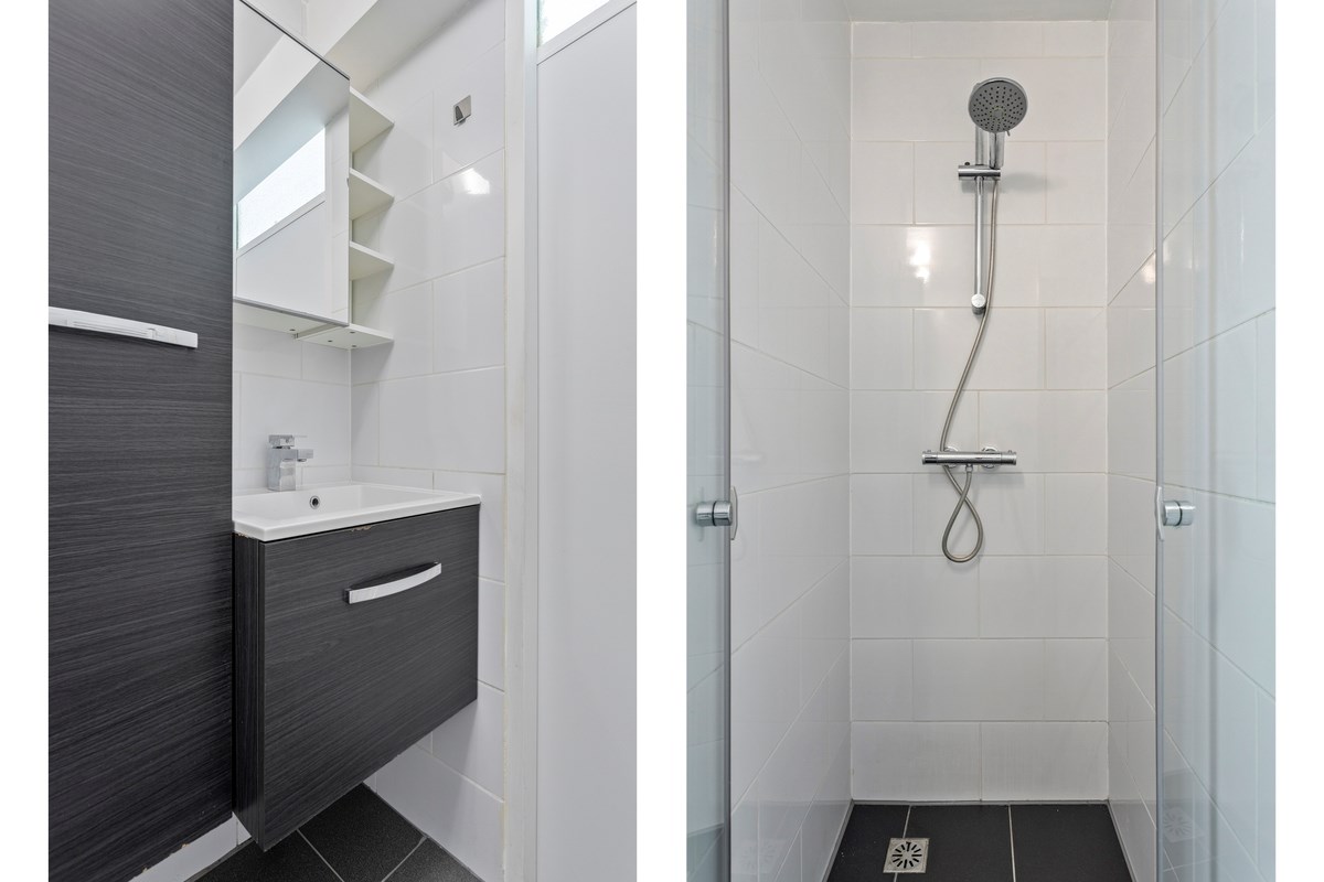 Bij het betreden van het appartement word je blik door de strakke PVC vloer en gestucte wanden geleid naar de fraaie glas-in-lood deur. Via de entree, kom je in de ruime hal die toegang biedt tot verschillende vertrekken, meterkast, bergruimte met CV-ketelopstelling (bouwjaar 2023) en mechanische ventilatie-unit, aan de rechterzijde bevindt zich de grote slaapkamer met vaste kast, aan de linkerzijde bevindt zich de kleine slaapkamer met extra bergruimte, het zwevend toilet is separaat en heeft een fonteintje, de badkamer is voorzien van een nette inloopdouche, wastafelmeubel en opstelling voor een wasmachine en droger, de ruime woonkamer met open keuken is voorzien van diverse inbouwapparatuur, te weten: een aqua hot kraan (direct kokend water), koelkast met vriesvakje, vaatwasser, weggewerkte afzuigkap, inductiekookplaat en combimagnetron. De radiatoren zijn fraai omkleed.